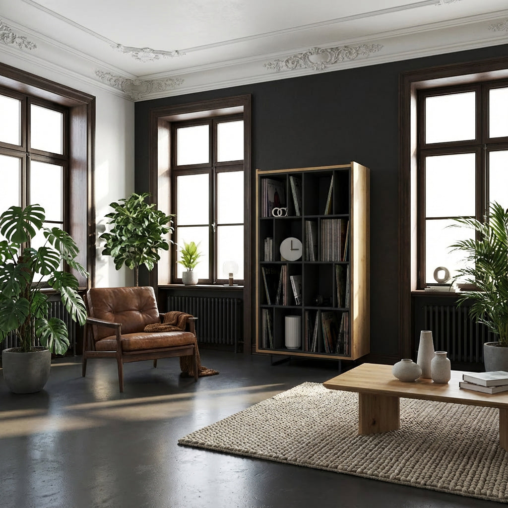 Das GAP - Schallplattenregal "L" ist die großzügige Alternative für umfangreiche Plattensammlungen. Mit den Maßen 76,4 x 42 x 145 cm bietet es acht offene Fächer für eine strukturierte und stilvolle Aufbewahrung von Vinyl-Schätzen.